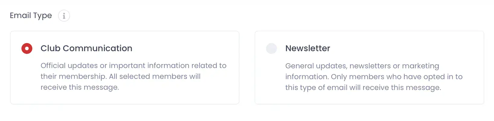 ClubPal is GDPR compliant and provides you with the tools to contact members in accordance with the law. You can use the "Club Communication" option to send the emails to all members selected in the "To" field. This can be useful for important emails send under Lawful Basis. Alternatively you can select the "Newsletter" option where ClubPal will filter out members that have not given consent to receive updates.